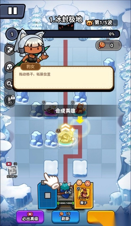4. 相同的英雄可以堆叠合成更高等级,还能拓展格子的位置。