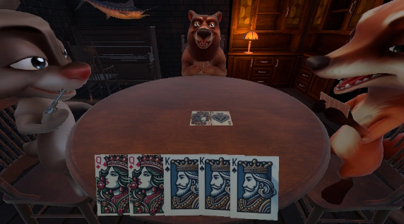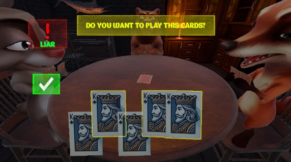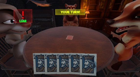 5、家轮流出牌并对数值计算,在卡牌对抗的基础上,让对手相信你的谎言。