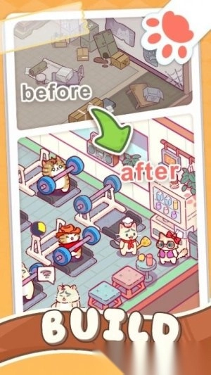 轻松休闲的经营模拟玩法、可爱治愈的猫咪角色,搭配各式各样的健身器材与装饰物,为玩家带来绝佳游戏体验,是一款适合所有人下载畅玩的优质作品。