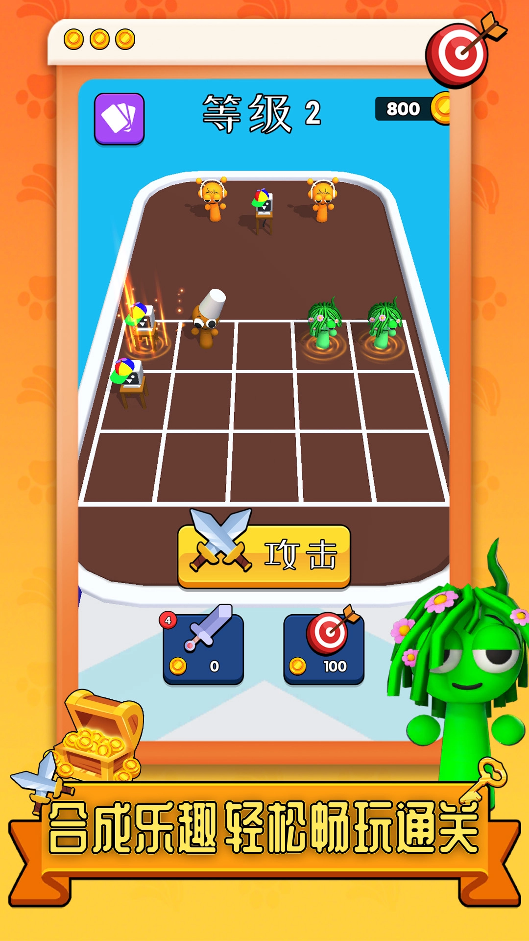 2、点击攻击按钮,操控合成升级后的角色并使用道具,与关卡中的敌人展开战斗,这一过程考验策略运用。