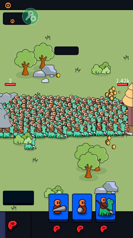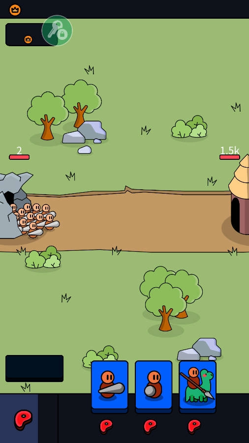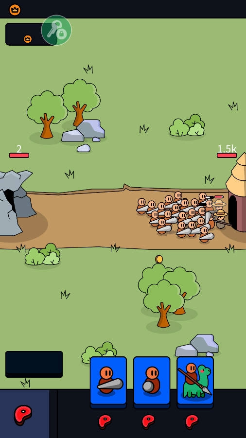 1、在游戏里,我们得持续通过召唤战士来守护自己的基地。召唤战士需要消耗食物,而食物会自行增长。