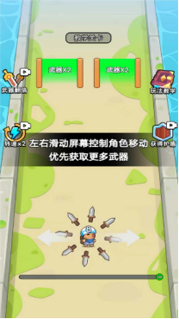 1. 核心玩法以“武器收集”为中心,玩家需在跑道上进行左右移动操作,拾取各类武器以提升自身的战斗能力。