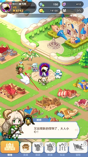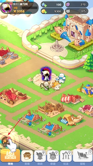 1、当你打开指尖像素城手游后,参照图示点击招募选项。