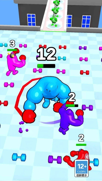 3、随后,格斗场轰然开启。眼前劲敌林立,你只需通过屏幕按键,就能操控果冻人尽情施展拳脚,狠狠给予对手重击。来吧,向着果冻拳王的至高巅峰全力冲刺!