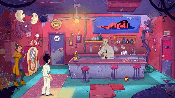 1、首先进入游戏后,我们到吧台上,然后跟酒保聊天可以买一杯威士忌。