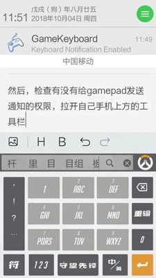 这里说一下,新版本的gamepad只需要按下音量键就会出现键盘了,不需要通知权限。