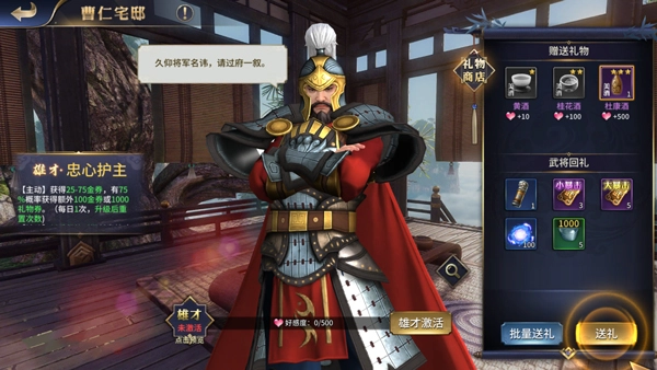 3、玩家可招募将领,通过提升好感度来解锁其雄才技能;
