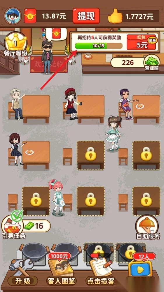 1. 进入游戏后,点击右下角的揽客即可吸引客人前来用餐。