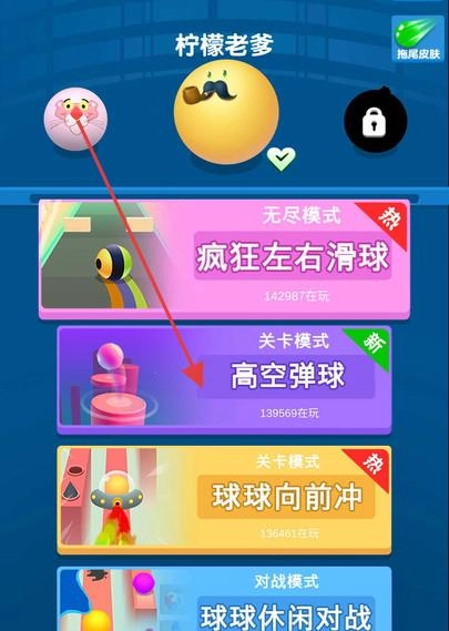 3、模式选择页,选“高空弹球”等关卡模式,用球球参与对应玩法,挑战高分、通关。