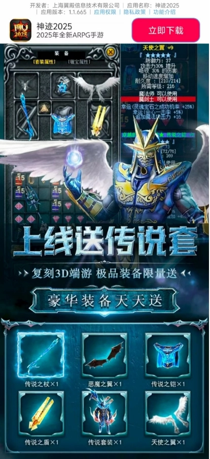 《神迹2025》手游,由上海翼殿信息技术有限公司匠心雕琢。它完美复刻端游《奇迹》的经典玩法,魔幻风格的奇迹世界中,震撼恢弘且壮观的地图场景,等待着你全新开启。游戏超高爆率,福利惊喜持续升级。要是你感兴趣,不妨叫上小伙伴们,下载安装《神迹2025》手游,一同并肩战斗!