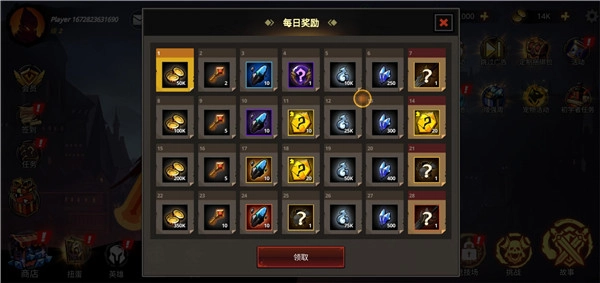 2、接下来是每日奖励,其中包含大量金币以及各类装备奖励。