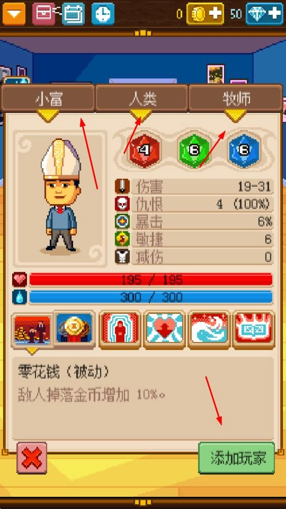 2、于角色界面,能够查看小富等角色的属性,并且可借助添加玩家按钮来配置不同类型的角色,以此为冒险做好准备。