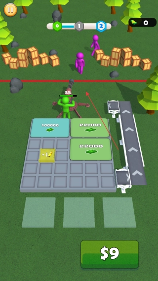3、借助已放置妥当的弹药,对靠近的紫色敌人展开射击。在战斗过程中,及时补充弹药以维持作战,成功将敌人击退,顺利完成本关卡挑战,进而进入下一关。
