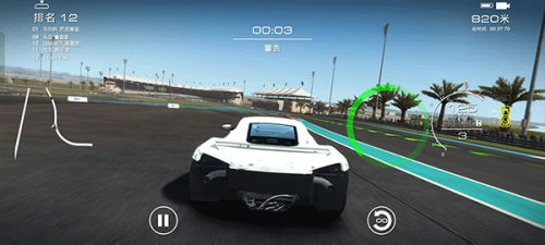 7、当321倒计时一结束,就赶紧往前冲。小编采用的驾驶操控方式为:通过重力感应来控制方向,点击右边是加速,点击左边则是刹车与漂移操作。