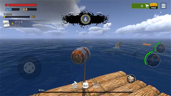 5、采集材料存在两种途径,其一为依靠双手进行采集,不过该方式仅能采集木筏周边的材料;其二是借助木钩来采集周围漂流的资源。