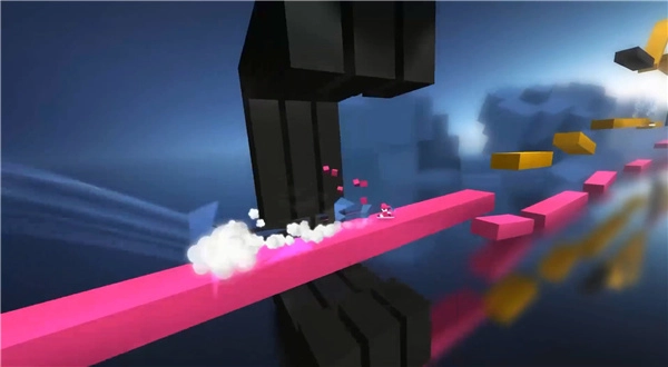 在进行跑酷时,玩家得迅速做出判断并变换颜色,使之与所处环境相匹配,从而避开碰撞障碍物。