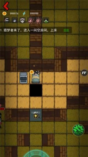 4、玩家们在睡觉时能够产生金币,借助这些金币,玩家们可以升级门、床以及装备武器。