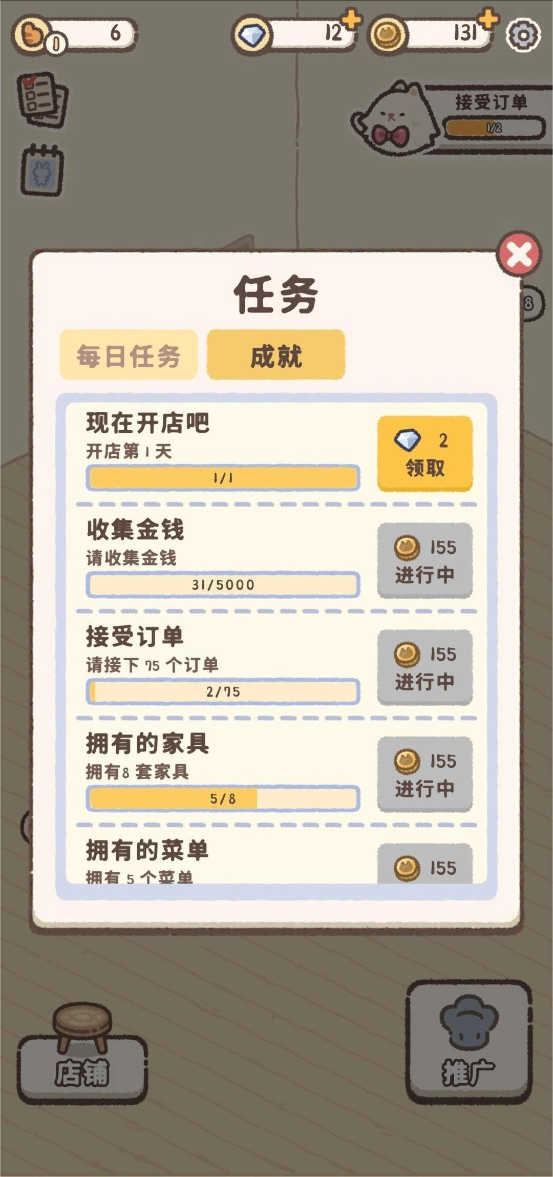 1. 顾客抵达喵喵甜品店时,头顶会冒出气泡,点击该气泡即可接受订单。