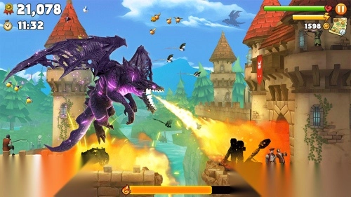 1玩法轻松易懂,极易上手,操控飞龙尽情破坏城镇,吞食生物来填饱肚子,努力获取最高分数。