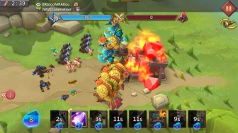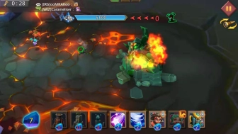 7 - 7阶段,用地精的“死亡射击”技能把地精清掉,因为它攻击防御塔造成的伤害太高了。先别急着清理对方防御塔,等把第一波boss打掉后,使用“大地崩裂”技能去清除敌方防御塔,之后直接布置“巨炮破塔队”。