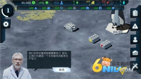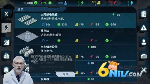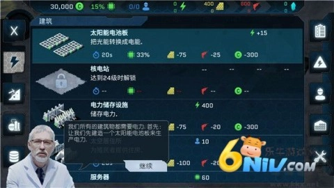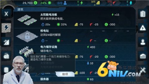 2、按照提示开启建造界面,挑选建造一块太阳能电池板,以保障基地拥有充足的电力供应。