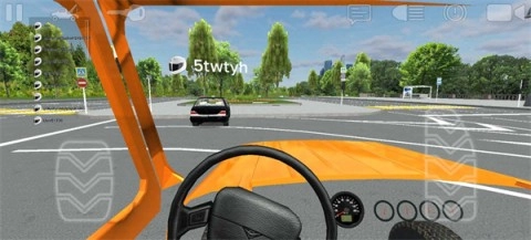 4、进入游戏之后,借助右侧的方向盘操控汽车的行驶方向,同时利用右侧的按钮分别实现前进与倒退的控制。