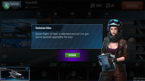 1在进入游戏之前,记得要升级装备哦!只需点击右下角的“直升机”图标,就能完成装备升级操作。