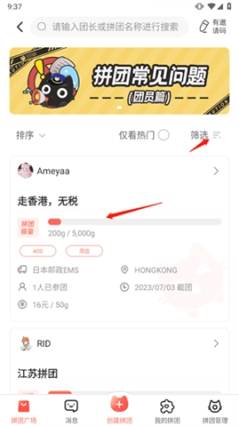 2. 当进入拼团页面时,挑选契合自身需求的拼团活动。