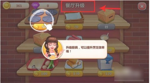5、与此同时,你能够开展【餐厅升级】操作,消耗金币解锁【煎饼锅】,以此加快食物的制作速度,也可以升级【煎饼油纸】,从而容纳更多食物。