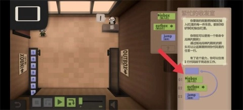 2、按照任务指令,将输入栏里的物品挪至输出栏,如同下图展示的那样,把绿色的指令置于任务下方。
