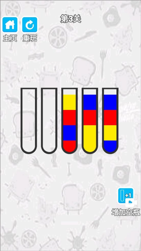 3、操作十分简单,适合每一个人。只要将相同颜色的沙子倒进试管,就能顺利通过。