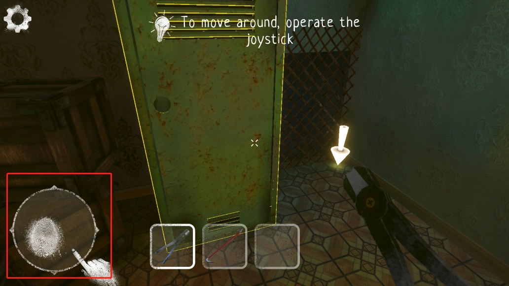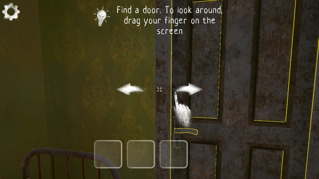 5、进入游戏后,按照提示操作:寻找一扇门,留意四周环境,接着将手指拖移至屏幕上。