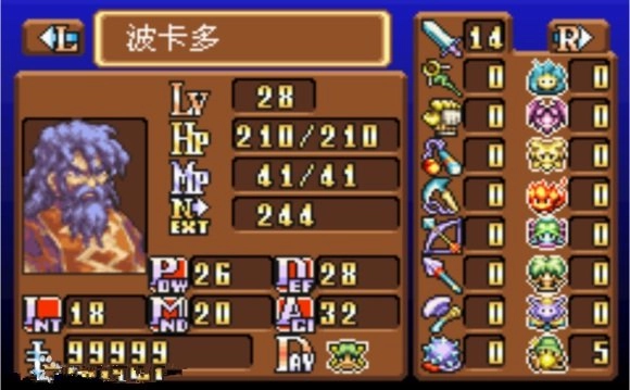 系统升级方式:在游戏中,玩家依靠击杀怪物来积累经验值以实现升级。每次升级时,会出现六个能力分配选项,它们分别对应战士、格斗、魔法使、贤者、盗贼以及随意这六个能力提升方向。各项数值所具备的作用如下:POW代表物理攻击,DEF代表物理防御,INT代表魔法攻击,MND代表魔法防御,ACI代表命中/回避。随着玩家持续升级,不仅角色本身等级提升,职业等级也会随之提高,进而获得额外附加能力。