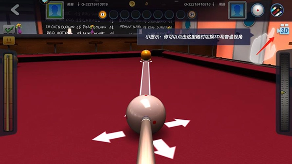 1、台球风云这款游戏具备3D视角与普通视角的切换功能。