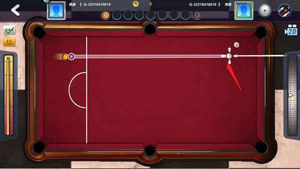 3、明确方向后,拉动能量条,随后松开,即可击球。
