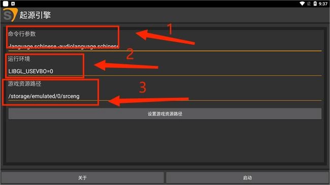 3、于首页处对命令行参数、运行环境、游戏资源路径等进行设置。
