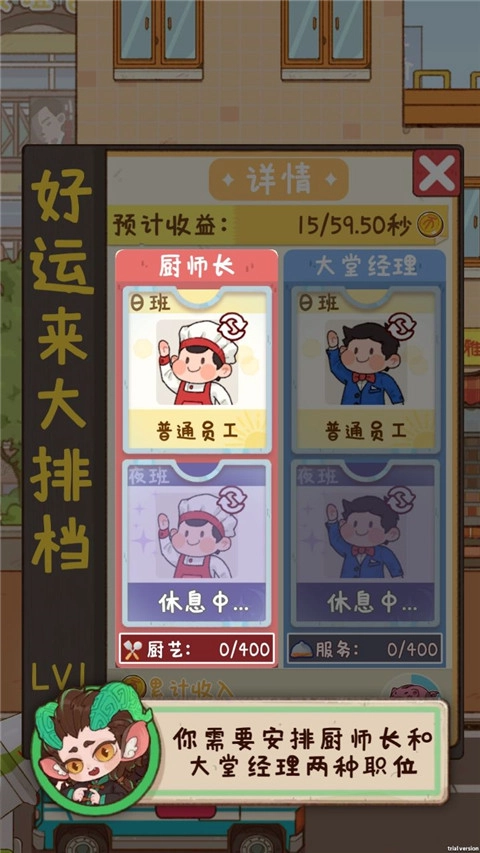 7、待大排档建造完成,便可招聘厨师并确定其具体职位,进而开启营业。