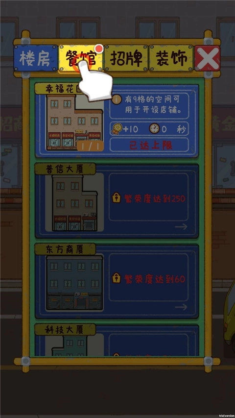 进展到这一阶段,便能够借助街边的餐馆以及员工,持续尝试去拿下顾客(要是没能成功,就进行升级、招募人手,依据顾客的口味搭配菜品,总之提供足够多的选择),以此获取大量资源。与此同时,提高店铺内各项研究的等级,增强日常的资源获取能力。
