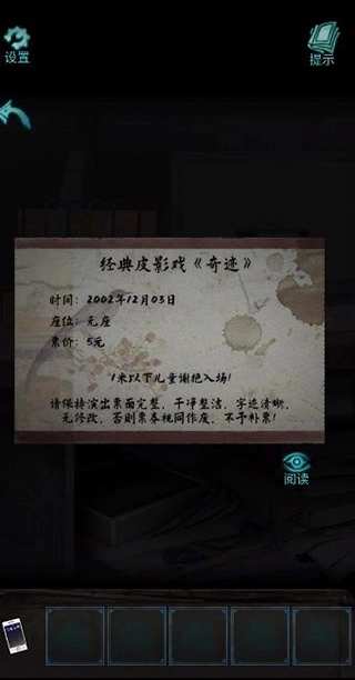 3、接着我们前往走廊东边进行调查,留意到地上有新鲜的脚印,似乎有人刚刚进入。然而,门是锁着的。进入房间后,我们发现了【经典皮影戏《奇迹》】的门票以及一台老式游戏机。