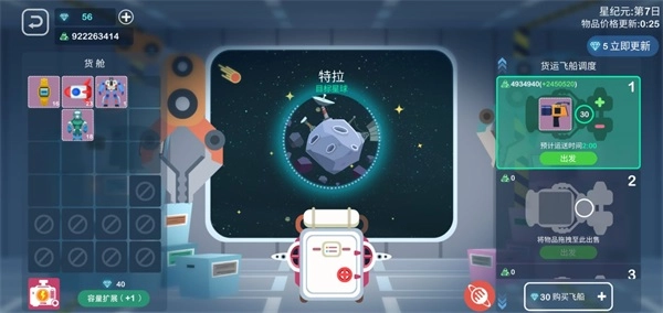 1、游戏买卖功能。买卖功能顾名思义就是不断的买买买和不断的卖卖卖。在本游戏里,星球的探索和发现是买卖功能体验的关键,每个星球都有他独特的产品和外观,至于价格嘛肯定是越到后期的越贵了。