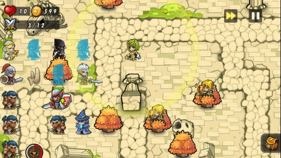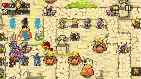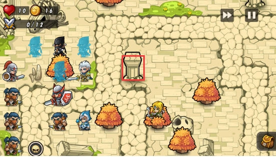 2、前期布阵:柱子一旦断掉,要立刻补上贤者与大法师,接着要是资金充裕,就继续建造神射手。第3波敌人中会出现一个小丑,让神射手集中火力攻击他,能获取不少金钱。