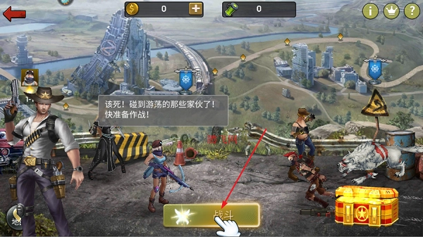 1、当进入明日地平线后,按照图示点击“战斗”。