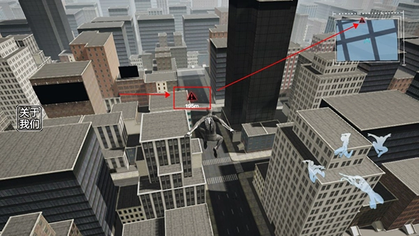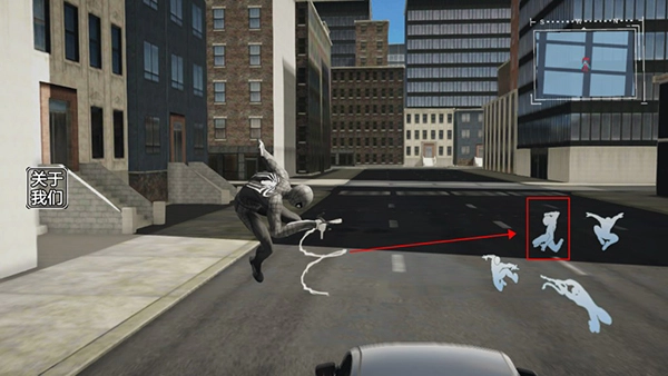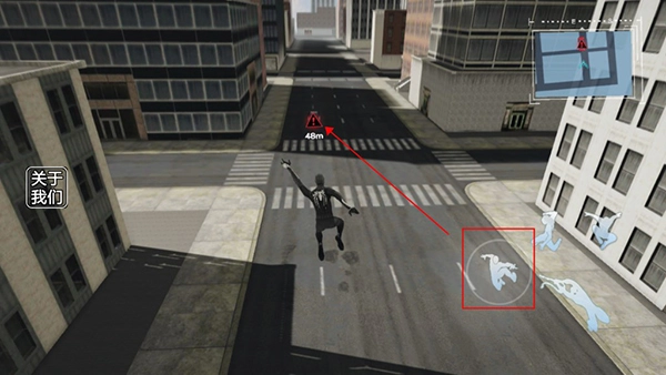 4、当玩家紧紧跟随着车辆时,即可点击蛛丝发射按钮,射出蛛丝,进而操控蜘蛛侠跳跃至车上。