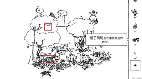 ③当你点击左侧的树时,会有一只猴子掉落,这只猴子便是你要找的目标。