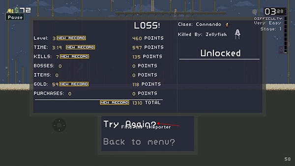 8、你既能够点击“Try Again”重新开启挑战,也能够点击“Back to menu”返回首页。