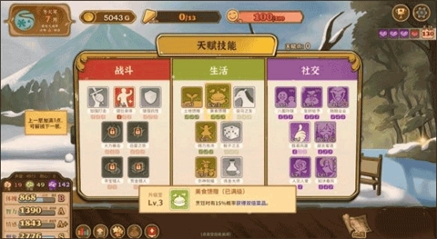 1. 核心天赋技能包含:土地馈赠、美食馈赠、兢兢业业、甜言蜜语。只有将这四个天赋技能全部点满,才能开启永动状态。