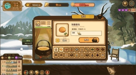 6、我们一波大约能获得7个面包,7个面包意味着7点行动力。每次打工需要7点行动力,这样就能成功达成循环。