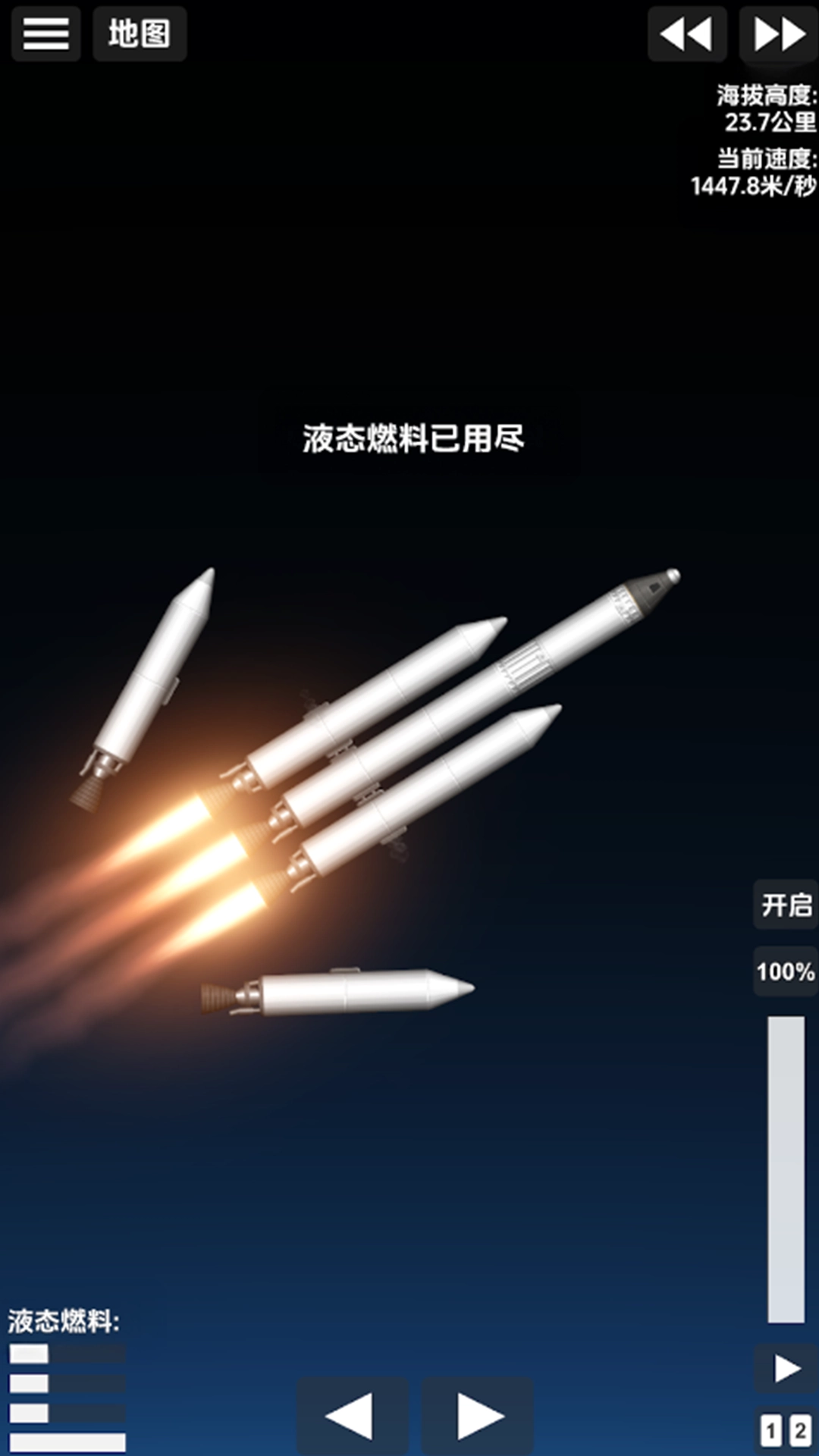 2. 多级火箭乃是突破大气层的关键所在。第一级适宜采用大推力但低效的引擎,而上面层级则更换为高效的真空引擎。同时,要对燃料余量进行实时监测,防止出现坠毁情况。
