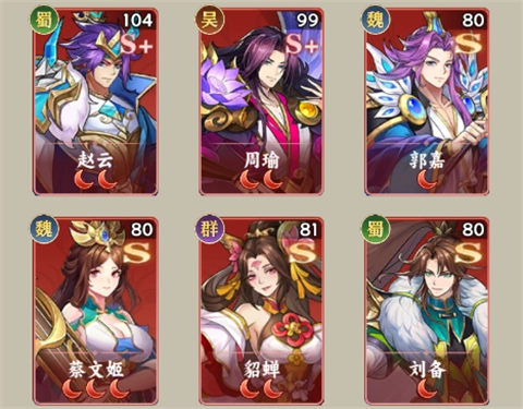 5、刘备、貂蝉、蔡文姬、郭嘉、周瑜与赵云