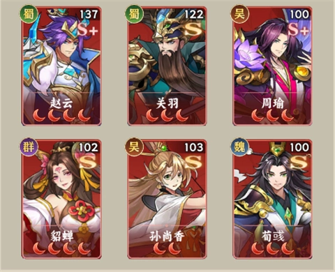 2. 包含赵云、关羽、周瑜以及貂蝉、孙尚香、荀彧